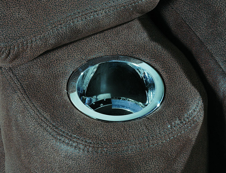Sophisticated contemporary design with tall, two-section backs and padded side bolsters that surround the entire chaise. The sloping arm extends behind the seat to provide soft support even when fully reclined. Rounded arm fronts feature a cupholder for convenience, and the padded chaise design assures comfort and support from head to toe.