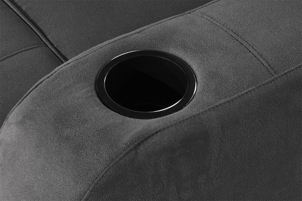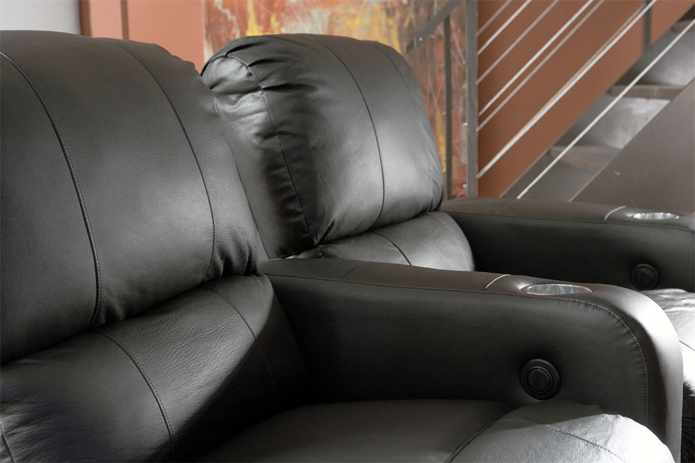 Contemporary styling with luxurious tailoring throughout. Seats and backs are generously padded for a clean, upscale look. Padded armrests feature a cupholder for convenience, and the chaise design assures extra comfort and support from head to toe when reclined.