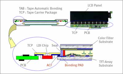 basic way of applying the LDI chips needed to drive the TFT panel.
