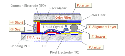 After the rubbing process, a sealant is applied to the periphery of the TFT-array
