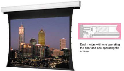 doors are standard on this model to conceal the screen when not in use. This ceiling recessed