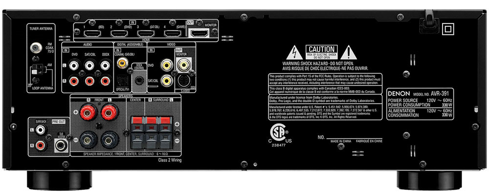 For the ultimate surround sound experience, the AVR-391 features a wide array of high resolution audio decoders, including Dolby TrueHD and DTS-HD Master Audio, as well as Dolby Pro Logic IIx, which provides Music, Cinema and Game modes.