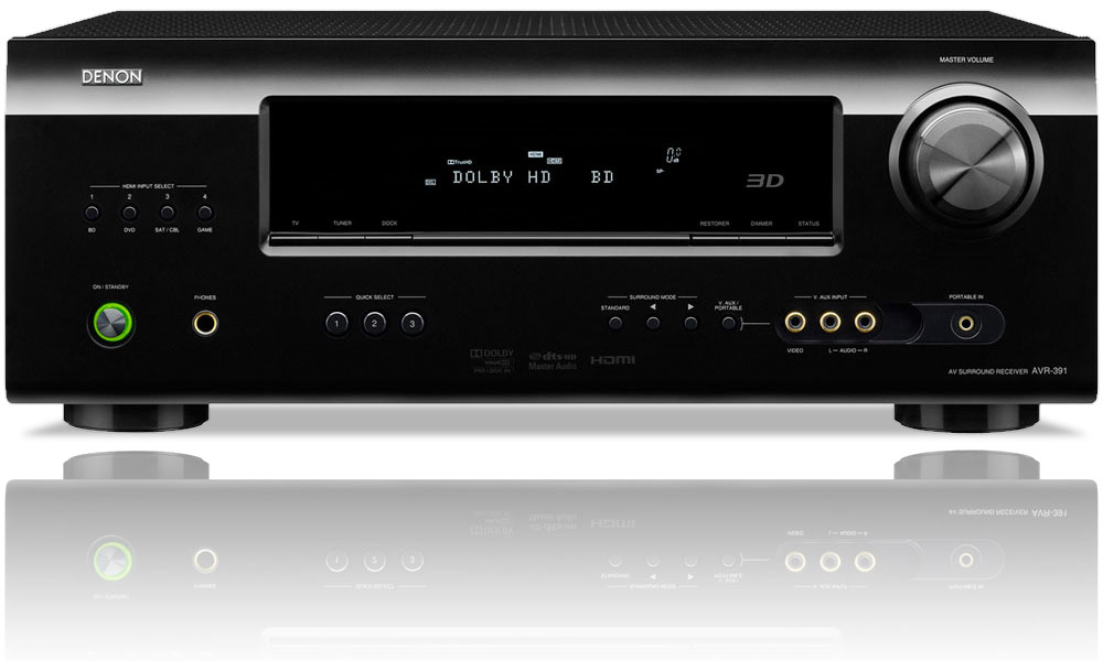 The Denon AVR-391 is an entry-level Home Theater receiver that provides High Resolution surround sound and is capable of handling HDMI 1.4a inputs with 3D Blu-ray compatibility. It also comes with a front panel 3.5mm audio input jack that allows connections to portable audio devices. With these and other features, the Denon AVR-391 provides high quality at an excellent price.