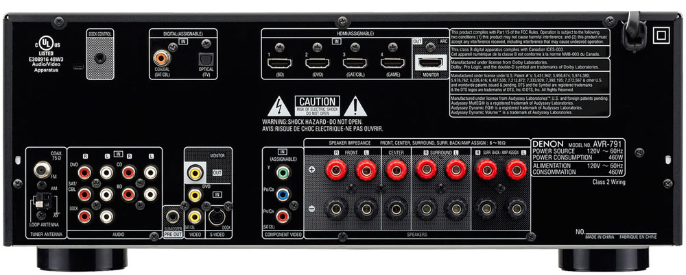DETAILED SPECS - DENON AVR-791 7.1 CHANNEL HOME THEATER RECEIVER WITH 1080P AND 3D SUPPORT: