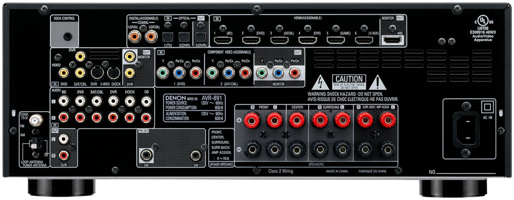 Equipped with 6 HDMI inputs, the AVR-891 includes the latest HDMI 1.4a specification, which provides 3D Blu-ray pass-through (Broadcast and Blu-ray) capability, as well as providing Audio Return Channel. There are also dual component video inputs for additional HD connectivity. Standard definition video sources such as VCR and DVD are upconverted to HDMI, which allows for a single HDMI cable run to the TV, avoiding the expense and hassle of multiple cable runs.