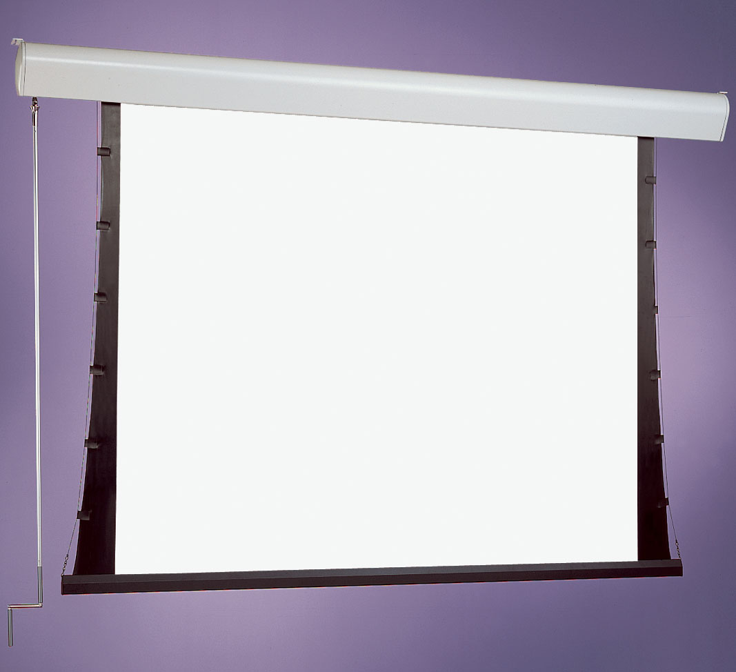The Silhouette/Series C is operated by a slim polished aluminum crank, which detaches easily for storage. The screen surface consists of a reflective vinyl with no textile backing, and is tab-tensioned for improved image clarity. Viewing surface retracts completely inside case. Its slender fascia and endcaps are made of gently radiused aluminum and present a strikingly modern appearance, concealing all fasteners and mounting brackets. The Silhouette will complement the other high tech equipment in your room.