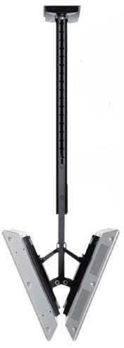 Suspends two plasma displays, back-to-back from a 19" long extruded aluminum column mounted to a heavy gauge steel ceiling bracket