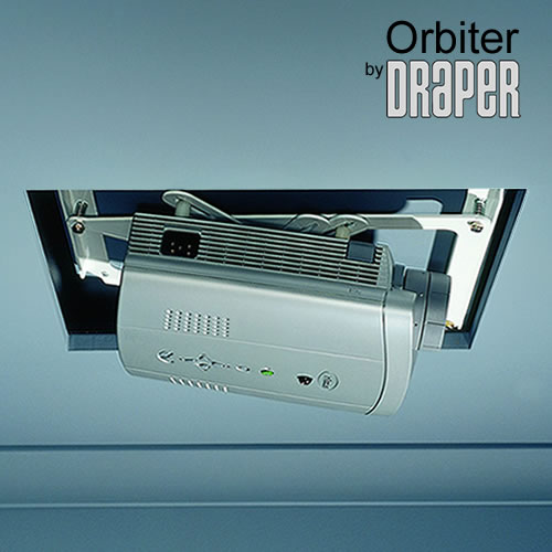 The Orbiter is an exciting projector mounting solution. This totally unique lift conceals your projector above the ceiling and quickly rotates it into the “show” position at the touch of a switch or wireless transmitter.