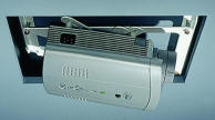 Uniquely versatile, ingenious design—fits in small cavities. Conceals projector and rotates it into "show" position