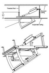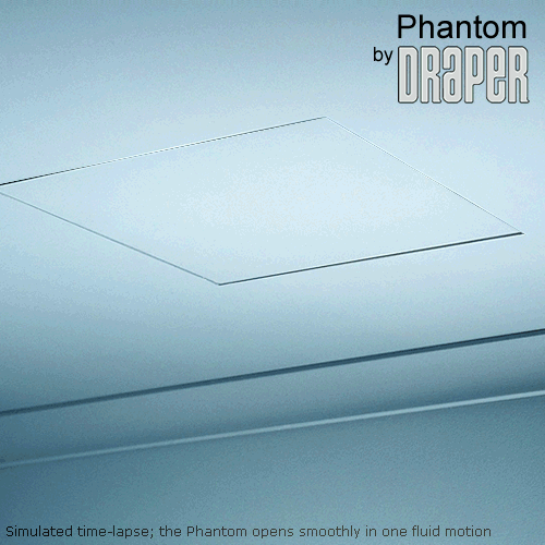 The projector is mounted into a framework above the ceiling. When activated, a trapdoor lowers the projector into your room using a precision actuator with pre-set limits. The projector is easily aligned during installation to provide a direct light path onto your Draper projection screen.