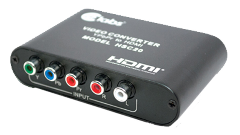 The CE labs HSC20 converts HD component Video (Y-Pb-Pr) and left and right audio (Stereo) to an HDMI output.
