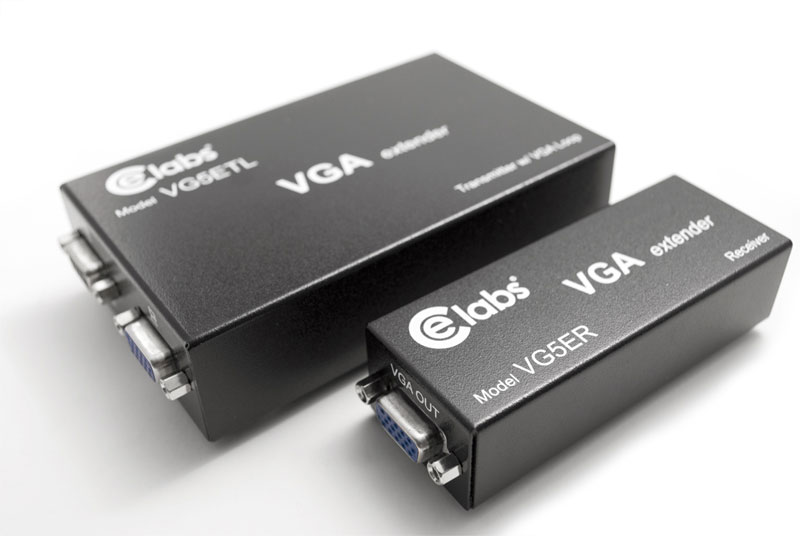 CE labs VGA Extender Kit offers adjustable equalization length and adjustable VGA signal gain. Save time and expense by allowing easy installation with CAT5/CAT6 and extend VGA signals up to 575 feet.