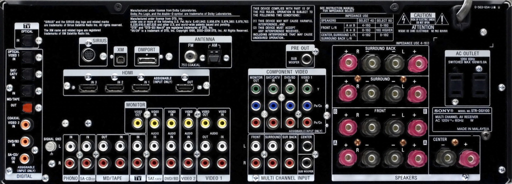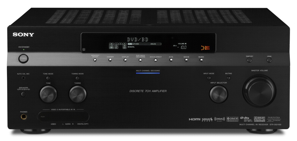 The Sony STR-DG1100 7.1 A/V receiver is a video centric entertainment hub for the most demanding HD experience. This receiver integrates the latest audio and video technologies while making operations simple to command and easy to follow. Utilizing Sony's Xross Media Bar inspired GUI with Faroudja DCDi Cinema Technology, the STR-DG1100 can up scale all video sources to 1080p1 in an intuitive environment for even the most novice user. The STR-DG1100 features BRAVIA Theatre Sync, DIGITAL MEDIA PORT and supports the continued expansion of high-definition content such as Blu-ray Disc. This new model supports both 1080/60p and 24p video formats, x.v.Color (xvYCC) while providing 3 HDMI inputs.