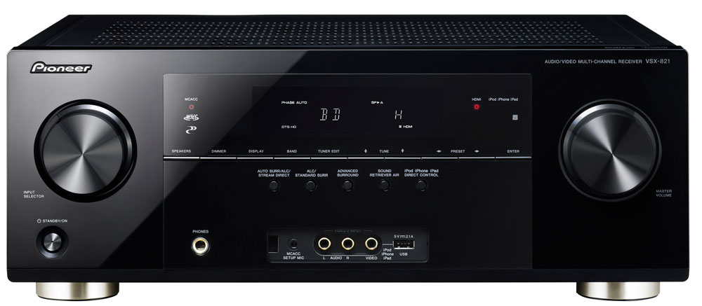 The Pioneer VSX-821-K Home Theatre Receiver delivers amazing performance in an elegant package at an amazing price. With connectivity options for all your latest high definition home theater components, the Pioneer VSX821K A/V Receiver takes it a step further with support for the latest high-definition audio formats, and support for your portable devices via a front panel mini-jack input and compatibility with Bluetooth sources. The Pioneer vsx-821-k receiver has the latest HDMI technology that will have you ready for 3D.