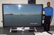 The world largest single screen plasma display panel is the Panasonic TH-103PF9UK. It has an active screen area of 89.3” by 50.3”, which translates to 31.19 square feet! It weighs 474 pounds and costs up to $70,000 before installation! The display boasts a resolution of 1920x1080P and a contrast ratio of 4000:1. The unit is so big it requires special modifications to your wall to hang it. Even getting the display to you can be a bit of a challenge, given the crate size is 8 feet 8 inches by 5 feet 8 inches by 2 feet 4 inches, and needs to be shipped on a flat bed truck.