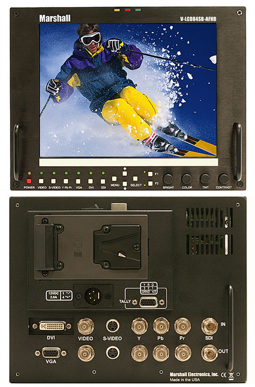 DETAILED SPECS - MARSHALL V-LCD84SB-AFHD STAND-ALONE 8.4 INCH SUNBRITETM HIGH DEFINITION MONITOR WITH ALL DIGITAL / ANALOG HD/SD INPUTS AND ADVANCED FUNCTION FEATURES: