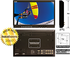 The Marshall V-R201P-AFHD-DT is a 20 inch widescreen high definition LCD monitor featuring our completely digital TFT-MegaPixel active matrix LCD platform. Available as a rackmount display or with a desktop stand, this monitor is an ideal lightweight replacement for CRTs used in all broadcast and professional video applications. When rack mounted, the V-R201P-AFHD is ideal for video wall applications, occupying only 7 RU. Emulation of SMPTE-C/EBU color and adjustable color temperature enable the most precise color representation possible. Our proprietary digital signal processing features 10-bit A/D conversion of all analog signals, with 4X oversampling and 5-line super-adaptive 2D comb filtering of composite signals. Deinterlacing is performed using our formulated algorithms with motion adaptive interpolation. Multi-format compatibility accommodates virtually all video formats including NTSC/PAL, 480i/p, 720p, and 1080i/p standards. VGA and DVI inputs accept VESA standards allowing the display to be used as a computer monitor. Advanced features include aspect ratio settings, a variety of screen markers, underscan mode, blue-only mode, monochrome mode, H/V delay, and Pixel-to-Pixel mode.