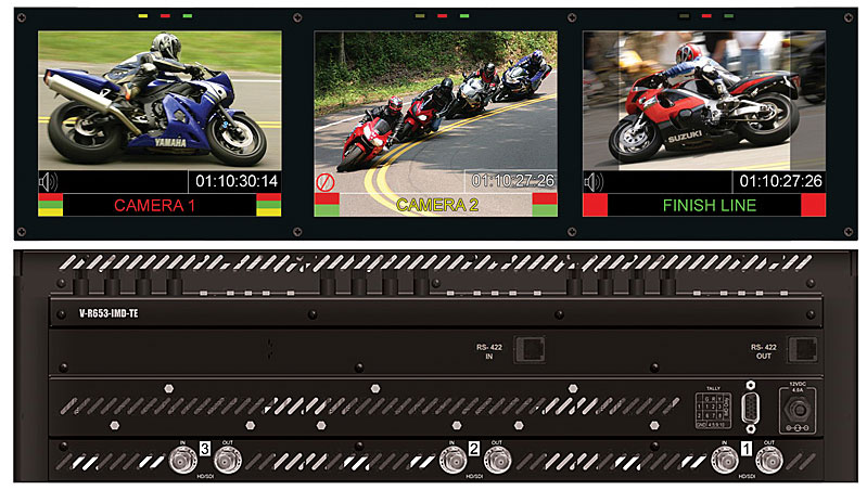 Marshall's IMD monitors integrate easily with existing Tally systems and controllers, including Image Video, NVISION, TSL, and MEI protocols. This 4RU unit also ships ready to rack mount and provides up to 20% more screen when compared to our competitors' LCD and CRT models that occupy the same space. This is in addition to the benefits of low weight and power consumption when compared to similar CRT products and separate Under Monitor Display configurations. The V-R653-IMD-TE is a perfect solution for large Video Wall applications and systems.