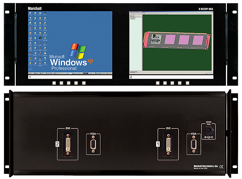 Our dual screen V-R82DP-VGA is a unique solution for Professional IT, A/V and Multimedia applications. Ready to rack mount in 4RU, the monitor set saves valuable rack space, is low weight and has low power consumption. Since it is only 1.65-inches deep, this model is perfect for use in any EIA 19-inch relay or equipment rack.