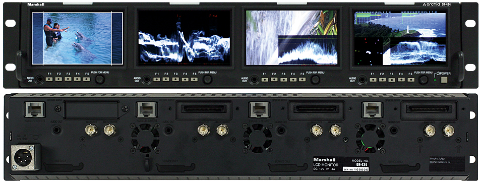 DETAILED SPECS - MARSHALL OR-434 4.3 INCH FULLY FEATURED 2RU QUAD BROADCAST LCD RACK MOUNT MONITOR: