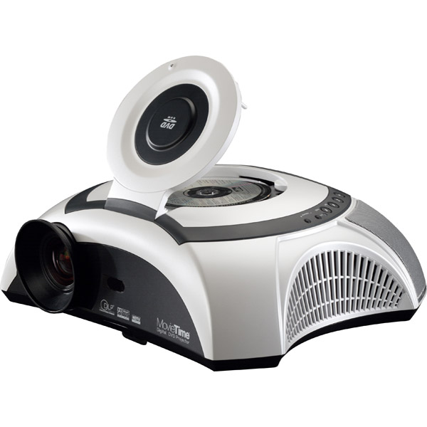 The Optoma MovieTime DV10 is a revolutionary digital projector with fully-integrated DVD player and speakers. Turns any space into a home theater instantly! Just plug in, point it at the wall and presto! Perfectly designed for a wide range of home entertainment applications – viewing the latest blockbuster, playing games, or watching home movies with friends and family.