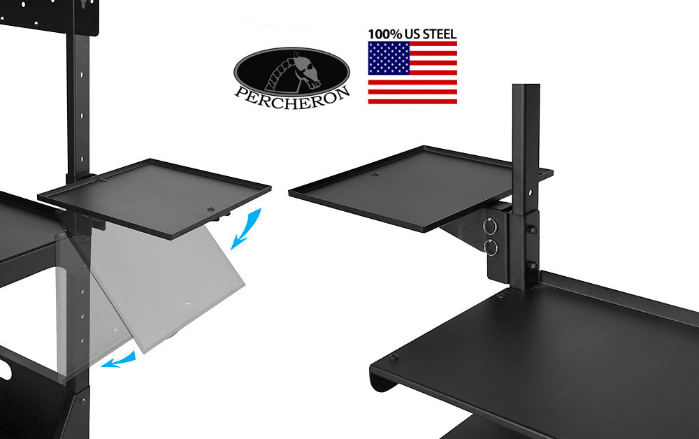 OPTIONAL ACCESSORY - NOTEBOOK TRAY. Fold down design with quick detach pins for easy use. Tray Size: 15" W X 12.5"D; mounts to either side. For use with PR-UFPC400.
