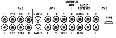 AV 3: HDMI (Digital Stream, SP DIF, DVI compatible), Audio L/R in