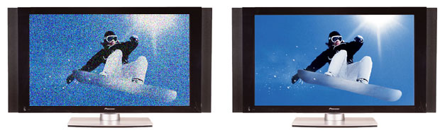 Pioneer PureVision Display Panels employ proprietary noise reduction technology to reduce distortion and eliminate video noise. Artifacting occurs on many widescreen plasma display panels when regular tv pictures are animorphically stretched from their native 4:3 resolution to the 16:9 resolution of a Plasma Display Panel. This creates blocky, fuzzy, overly-stretched images. Pioneer's Natural Resize Technology corrects these problems, allowing you to enjoy your plasma display to its fullest. |