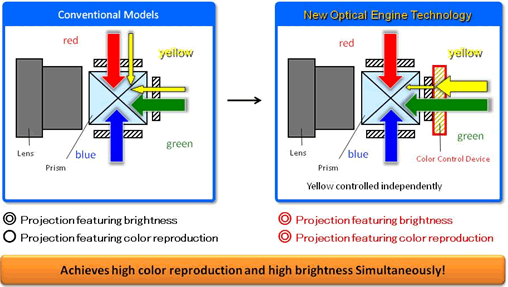 - New optical engine design overcomes obstacle of color-loss with increasing brightness typical of 3LCD by up to 20% over previous models