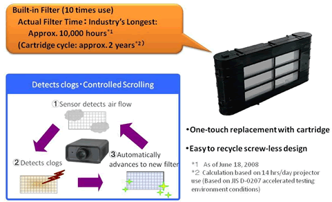- Filter is industry’s longest*3 lasting: approximately 10,000 hours (cartridge lifecycle is approximately 2 years*4)