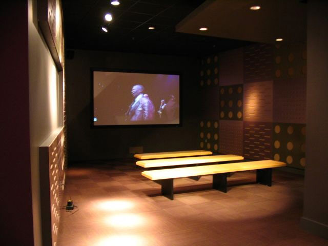 At the Introductory Theater people learn about B.B. King and his music, by watching a 16:9 HD video presentation sourced from an HD video server and displayed on a motorized screen measuring 168 x 94.5 inches.