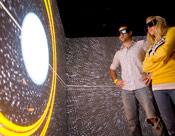 The HIVE features high-tech projection on three 8’ by 10’ walls and the floor, providing a unique, fully immersive visual experience. A set of active 3D glasses with motion-tracking technology completes the illusion, with the projected images shifting perspective in reaction to the person’s movements. Visitors will find themselves hovering above the water, in a small town in Portugal, or flying through the solar system among nearly 30 experiences available.