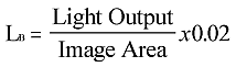 where Image Area is expressed in ft² and Lamb in incident foot candles. Here p is a coefficient for expressing the reflectivity of the screen surface and generally may be set to equal 1.0 for front projection and between 0.15 and 0.2 for rear.