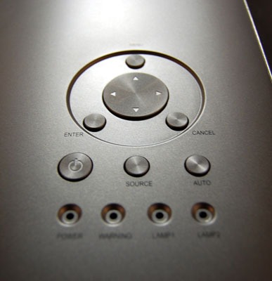 Button arrangement on the Pro7501DP. Both “LAMP” lights will activate in dual lamp mode.