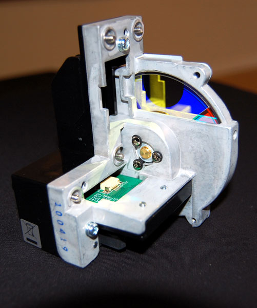 As I mentioned, I initially went with what would be considered a “less than optimal” projector set up position. I was able to square up the image, even with several feet of horizontal misalignment, using nothing more than lens shift and moderate keystoning. Image came courtesy of an XBMC media PC outputting 1080P via HDMI. Before any of that, we replaced the 4 segment color wheel with the 6 segment, which, while not quite as bright, provided a richer color palette. Frankly, as the pictures below will show, brightness even on a 22 and a half foot screen, with the 6 segment wheel installed, is exceptional. It’s accessible by removing the top cosmetic panel and requires a single Phillips screwdriver. Easy access means you can switch color wheels almost on the fly, with nothing more than a few minutes installation time.