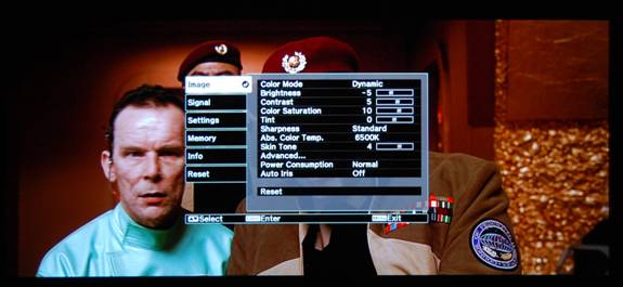 I used primarily “BBC’s Planet Earth” and “The Fifth Element” for evaluation. Colors were good, more muted than I’m used to seeing on other units like the Panasonic PT-AE4000U and even the Mitsubishi HC3800. As I’ve said, black levels are very dark, which lent the overall image a lot of depth. Overall “pop” was lacking though. It’s hard to say exactly where the “flatness” lies. It may be only that our test 8500UB was installed beside our PT-AE4000U, giving me the opportunity to flip back and forth and do side by side comparisons.