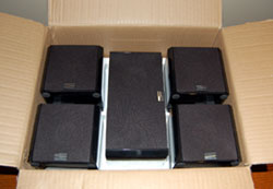 While clichés are often times trite, overused, and simplistic, it’s also fair to say that they offer a quick reference and marketable punctuation point to what it is you’re trying to say. Case in point is the Brighton 5.1 Cube System from Sinclair Audio. It happens to be a complete six speaker home theater audio system that offers compact, scaled down size for those of us that are weary of filling our entertainment room up with more “stuff.” But based on performance, one could put forth the statement that the Brighton 5.1 Home Theater Cube System offers much bang for its buck, thereby reinforcing the point that good things do indeed come in small packages. Style & AppearanceWhen one thinks of home theater, six speaker packages, you’d probably imagine a massive box containing a series of slightly smaller boxes within. In the case of the Brighton 5.1 Cube System, one small box contains everything you need, nicely arranged and packaged extra snug for added safety. I mentioned off the top that the Sinclair Brighton home theater speaker system is compact, offering up a great selling point to those of us who are space-conscious or space-limited, yet still want big-time, quality sound. I’ll add that this six speaker system is not only compact, but ultra-compact. The center channel loudspeaker measures in at: (H x W x D) 11 x 22 x 10 centimeters or 4.3 x 8.7 x 3.9 inches, while the left/right, left surround/right surround satellite loudspeakers are all 11 x 11 x 10 centimeters or 4.3 x 4.3 x 3.9 inches. The only speaker component that is somewhat on par (size-wise) with a traditionally-sized home theater speaker package is the subwoofer, which is still a modest (H x W x D) 27 x 27 x 27 centimeters or 10.6 x 10.6 x 10.6 inches. In terms of overall power, the entire Brighton Cube 5.1 system boasts 300 watts of power, with the sub and center speaker offering 100 watts each, while the four satellite speakers combine for 100 watts. The subwoofer features triple 6.5-inch drivers offering deep bass and distortion-free audio, while the center speaker and the four satellite speakers come with three-inch woven fiberglass drivers to maximize audio range regardless of the size of the room. From a purely aesthetic point of view, the Sinclair Audio Brighton Cube 5.1 speaker system scores major points, featuring a high-gloss, jet black color finish for the four satellite speakers and the center speaker, while the subwoofer comes in black color finish that substitutes high gloss with a nicely textured finish. Let’s now get into the set-up and performance of this system. Set-Up & PerformanceDespite not being able to simply “plug and play” when it comes to a 5.1 surround sound speaker set up, the auditory differences of it as opposed to a one-speaker, virtual surround sound system are plainly obvious. The connection points on the speaker end are clearly color-coded so you know exactly what end of the wire goes where, and the slots feature a spring opening that allows you to insert the wiring with minimal fuss and hassle-free ease. I probably would’ve preferred a larger opening to insert the actual wiring into the speakers, but as it is, just make sure you diligently twirl and tighten the exposed end of the speaker wiring well, and you should be good to go. In terms of a receiver, I used an oldie-but-goodie: the Denon AVR-3803. One thing to be aware of with the Brighton 5.1 Cube System: you'll need to purchase the speaker wires separately as they aren’t included. While I’m by no means a home theater, speaker set-up specialist, from top to bottom, I was able to get everything connected and set-up within an hour or so. With the set-up complete, it was now time to for the fun part: getting to hear the Brighton 5.1 Cube System in action. In terms of the specifics, I was connected via an Optical audio cable from the Sony PS3 (for HD playback), which itself was connected to a 47-inch Nexus NX4703 LCD TV via an HDMI cable. The test subjects were the Blu-ray movie S.W.A.T. and the music CD “Turn on the Bright Lights” from Interpol. In terms of the space I was in, the room measured 18 x 13 x 9 (L x W x H) feet. First up was S.W.A.T., and I went through various scenes that offered a nice blend of high, lows, and middle-of-the-road stuff. For the multitude of high-octane action scenes, the system fared very well; dispersing sound throughout the room with the requisite command and auditory power expected of a 5.1 home theater speaker system. While one would assume that small and compact speakers such as these couldn’t deliver room-filling sound with crunch, and a nice, deep, rich bass, they managed to more than hold their own with the big boys. The scene at the shooting range in particular (Chapter 7) had some real snap to it, and it literally felt as though the bullets were coming right through you. That authentic left to right, front to back audio sensation is something no single-speaker, virtual surround sound system can truly replicate, and in this regard, the Brighton 5.1 Cube system delivered the goods as advertised. It also did a real nice job with the lows and mid-range audio, and even when the volume was cranked to obscenely ear-splitting levels, these speakers maintained a clear and sharp sound without any distortion, hisses, or pops to speak of. Next up was the audio CD care of New York band Interpol. For those familiar with this band and this album specifically (and if you aren’t you certainly should be), you’ll know that it offers up a deep, rich, and varied soundscape that incorporates a wide array of instrumentation, As such, I was pleasantly surprised at how the Brighton 5.1 Cube System handled everything with great aplomb. The vocals were clean and sharp, the guitar licks were smooth, and the multitude of bass lines were knocked out of the park every single time. And despite the CD being a two-channel stereo source, everything felt full, and you could pick out even the most 