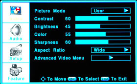Once you’ve physically placed it where you like, you then have the option to adjust various picture and audio settings to your liking. As shown below (Picture and Audio menus), the menus incorporate a very intuitive and easy-to-use layout, that, in addition to Picture and Audio, also have sections for Setup and Feature.
