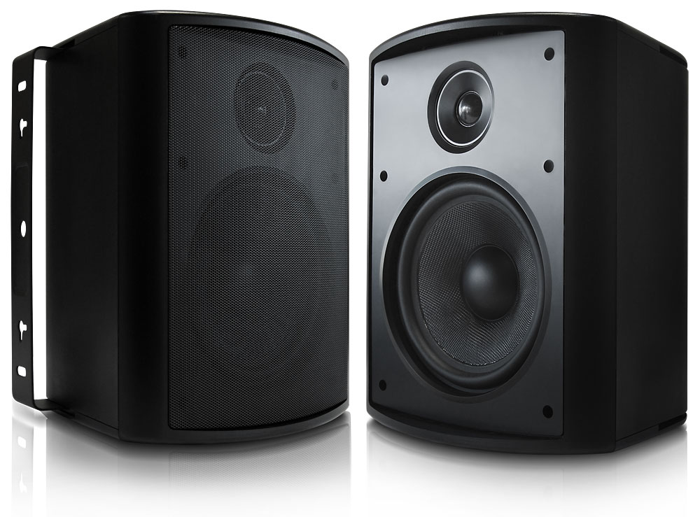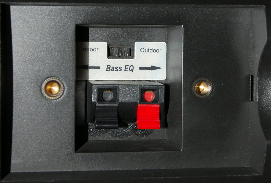 The EVIO825 is a big speaker, on the high end for the outdoor crowd. It’s a sleek design, simple, and should compliment a variety of installation positions. The bracket is adjustable though a complete swing around the backs and sides of these speakers owing to the clever concealed hinge. Because they’re concealed the hinges are protected from the elements, extending their useful lifespan if you use these outdoors. It’s a nice touch that I wish more manufacturers included on their equivalent products.